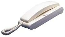 Figure 1: The Comelit 2410W/2B Digital Door Intercom unit. This image displays the white, wall-mounted intercom handset with its coiled cord and base unit, featuring several small buttons.