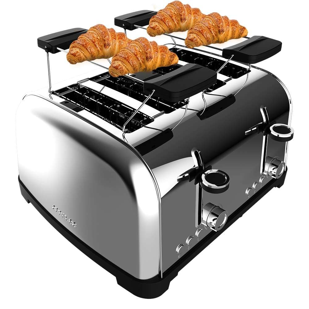 - Four wide slots (3.8 cm) for thick bread and pastries.